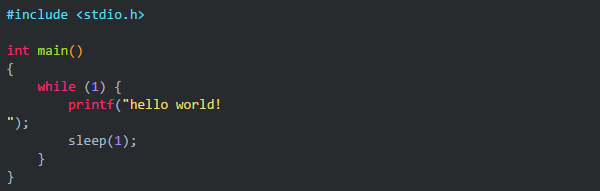 这个程序每隔 1s 就会输出一句 hello world 。为了后面的演示,将它编译并复制多份样本:hello1, hello2, hello3。