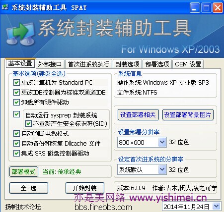 打开界面后,最上面有“基本设置”,“外部接口”,“首次进系统执行”,”封装选项“,”部署选项“,”OEM设置“,下面一一给大家介绍。