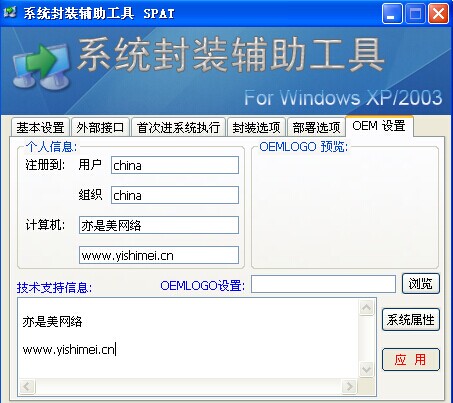 这里主要显示封装后的系统属性显示信息,比如”计算机“那里,添加的信息可以通过右键 ”我的电脑“ - ”属性“查看。