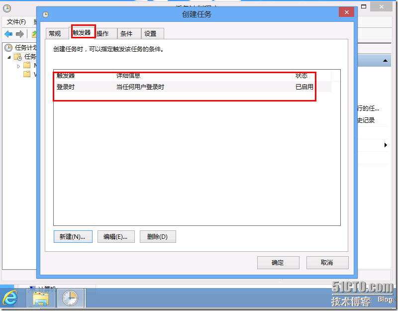 切换到触发器选项--新建----开始任务类型---登陆时