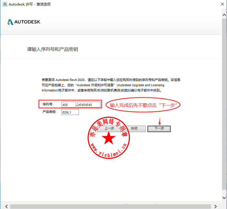 输入序列号“400-45454545”,先不要点击“下一步”,