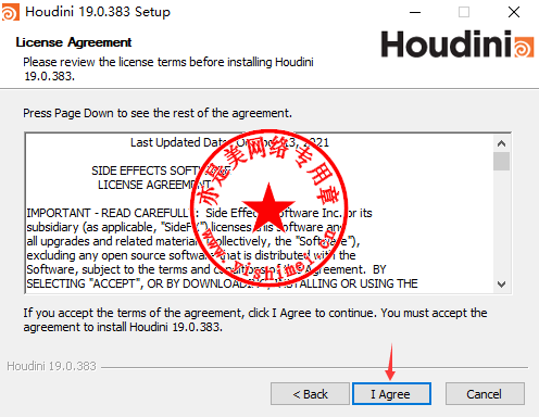 下载<SideFX Houdini FX 19.0.383+注册激活文件>压缩包,解压缩后双击里面的houdini-19.0.383.exe开始安装,