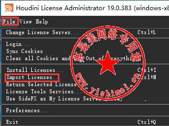 下面点击License Administrator 19.0.383左上角的“File”-“Import licenses..”