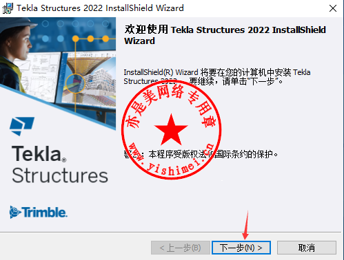 下载<Tekla Structures 2022 SP0中文版+注册激活文件>压缩包,解压缩后双击里面的TeklaStructures2022.exe开始安装,