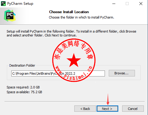 下载<JetBrains PyCharm Professional 2022.2+注册激活文件>压缩包,解压缩后双击里面的pycharm-professional-2022.2.exe开始安装,
