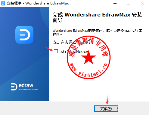 安装完毕,去掉“运行EdrawMax”前面的勾,点击“完成”,不要打开软件,