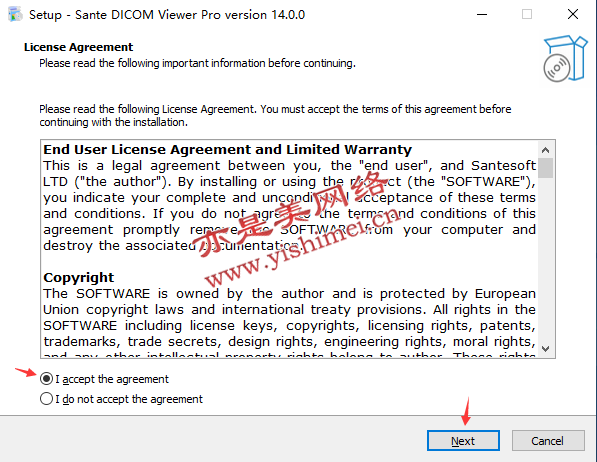 下载<Sante DICOM Viewer Pro 14.0.0+注册激活文件>压缩包,解压缩后双击里面的sante_dicom_viewer_pro.exe文件开始安装,