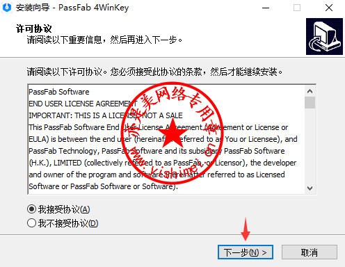 下载<PassFab 4WinKey Ultimate v8.4.4.1中文版+注册激活文件>压缩包,解压缩后双击里面的PassFab.4WinKey.Ultimate.v8.4.4.1.exe开始安装,