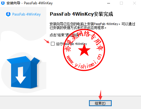 去掉“运行PassFab 4WinKey”前面的勾,点击“结束”,暂不要打开软件,