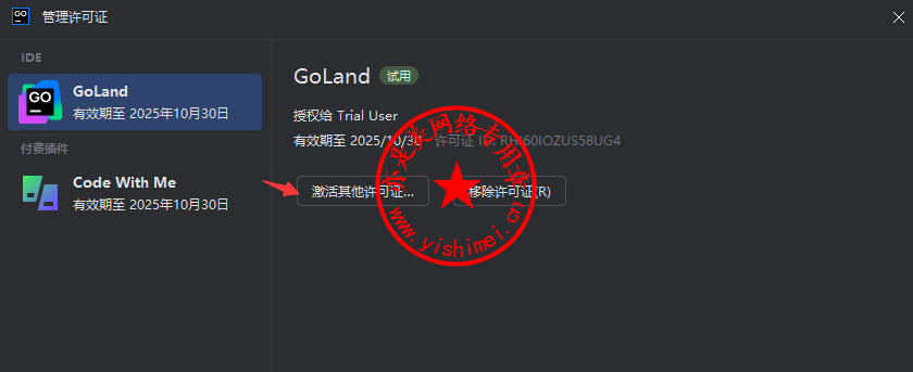 点击“激活其他许可证”,