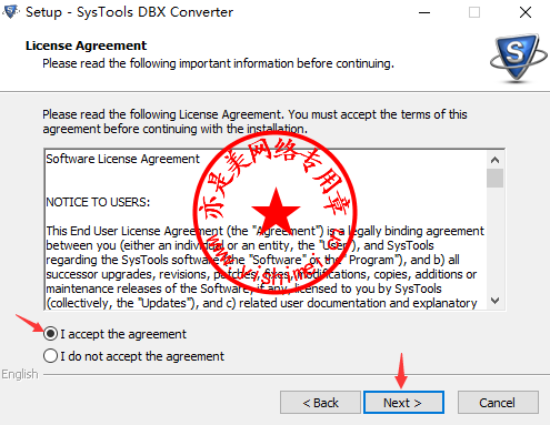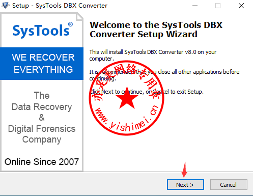 下载<SysTools DBX to PST Converter 8.0中文版+注册激活文件>压缩包解压缩后双击里面的dbx-converter.exe开始安装,
