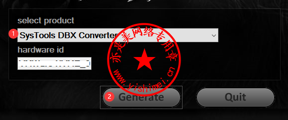 先选择“SysTools DBX Converter”,然后点击“Generate”,这样就会在同目录下生成一个SysTools_DBX_Converter.Lic文件,