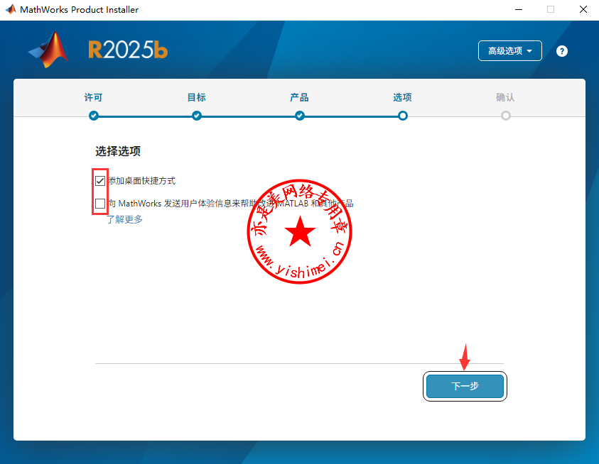 按上图所示进行勾选,点击“下一步”,