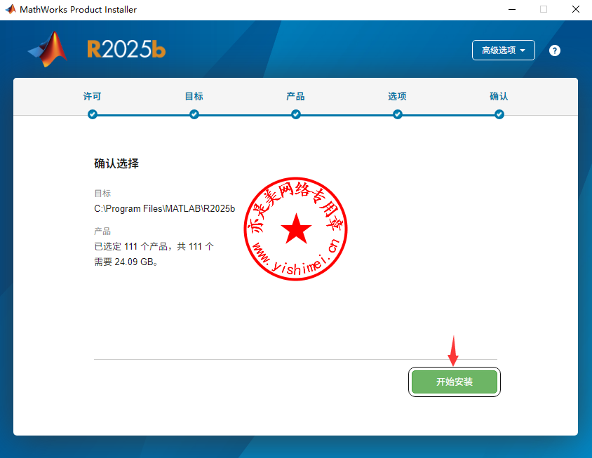 点击“开始安装”,