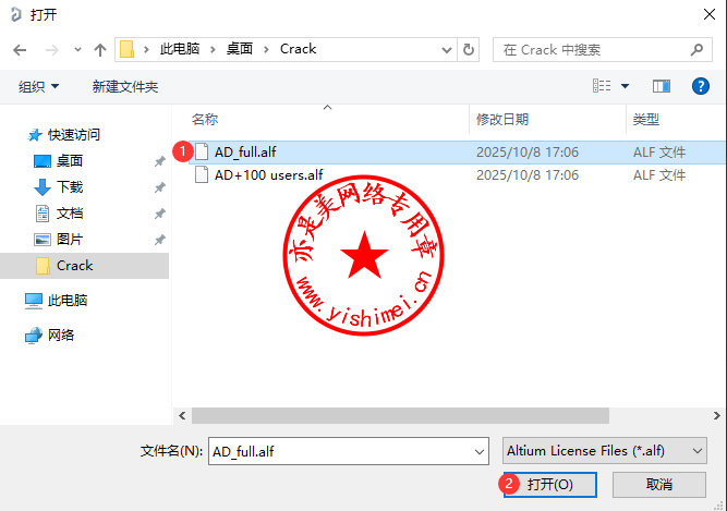 定位至Crack文件夹,随意选中一个文件,点击“打开”,