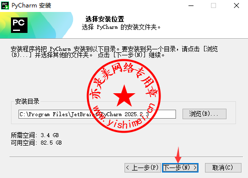 下载<JetBrains PyCharm Professional 2025.2.3中文版+注册激活文件>压缩包,解压缩后双击里面的pycharm-2025.2.3.exe开始安装,