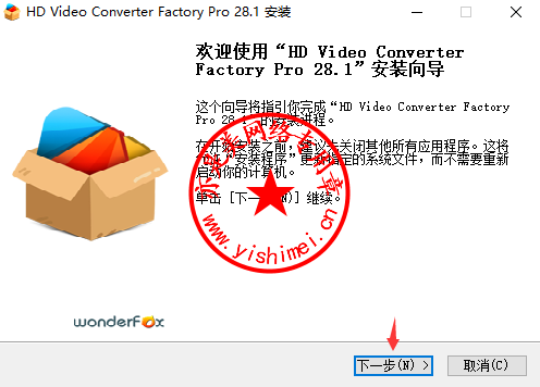 下载<WonderFox HD Video Converter Factory Pro 28.1中文版+注册激活文件>压缩包,解压缩后双击里面的hd-video-converter-pro.exe开始安装,