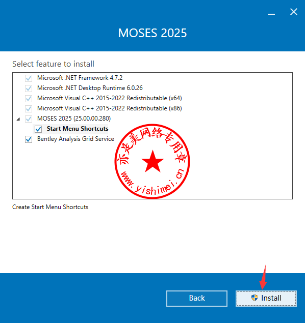 下载<Bentley MOSES 2025 v25.00.00.280+注册激活文件>压缩包,解压缩后双击里面的Setup_MOSESx64_25.00.00.280.exe开始安装,