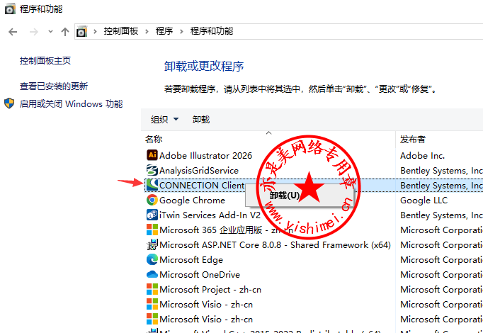 找到CONNECTION Client,右键点击它,将其卸载掉,