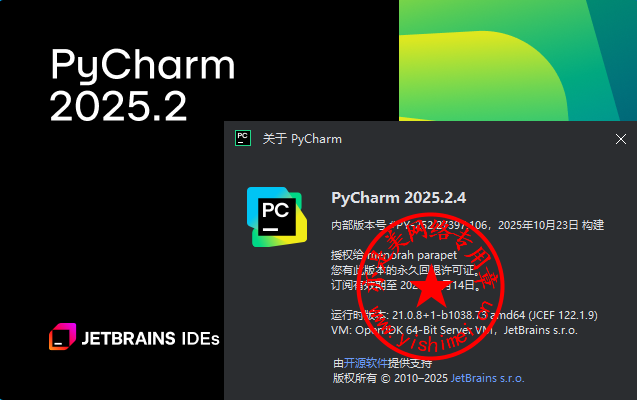 至此,Python编程开发集成环境JetBrains PyCharm Professional 2025.2.4中文版的下载、安装与注册激活教程介绍完毕^_^