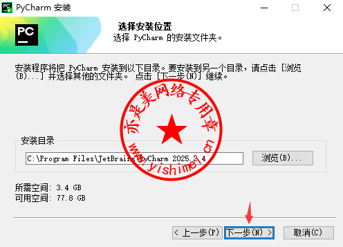 下载<JetBrains PyCharm Professional 2025.2.4中文版+注册激活文件>压缩包,解压缩后双击里面的pycharm-2025.2.4.exe开始安装,