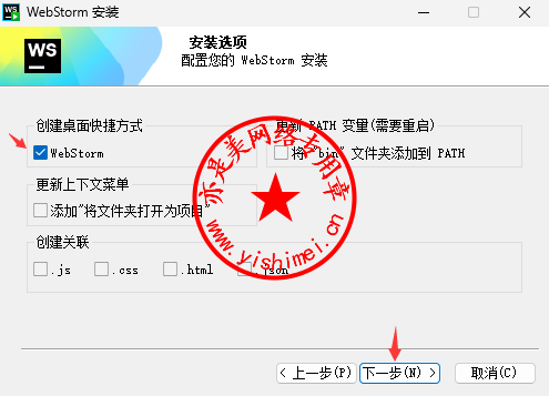 勾选“WebStorm”,点击“下一步”,