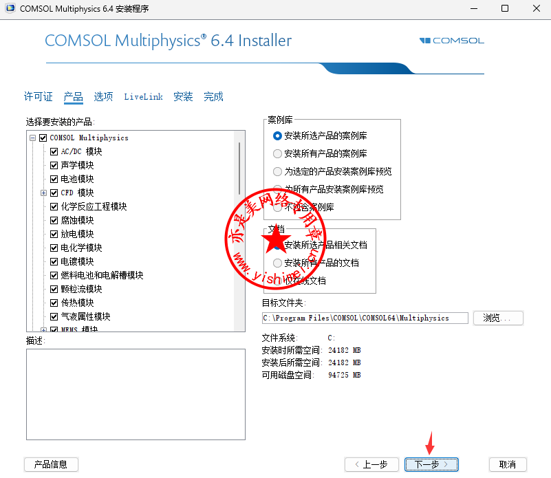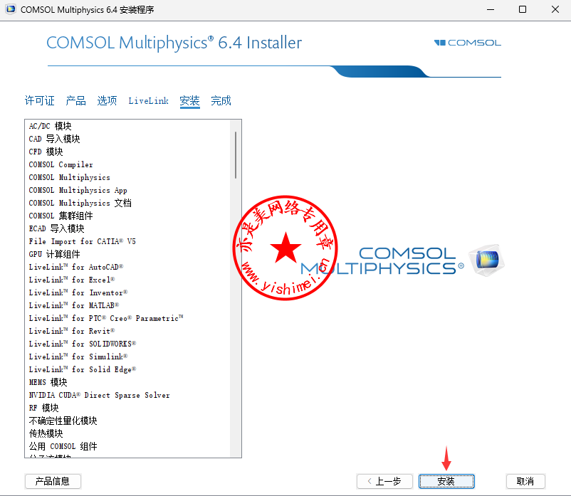 下载<Comsol Multiphysics v6.4.293中文版+研习文件>压缩包,解压缩后进入Comsol Multiphysics v6.4.293文件夹,双击里面的setup文件开始安装,