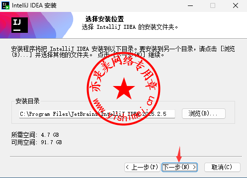 下载<JetBrains IntelliJ IDEA Ultimate 2025.2.5中文版+研习文件>压缩包,解压缩后双击ideaIU-2025.2.5.exe开始安装,