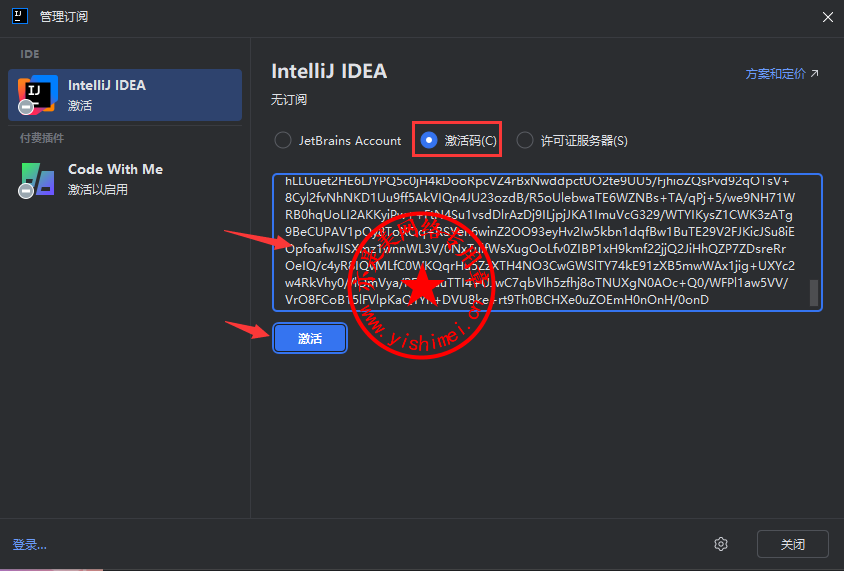 我们先勾选“Activation code”,然后Study文件夹下找到Activation code文件,打开并复制输入进去,点击“Activate”,