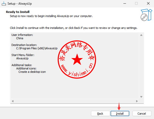 下载<AlwaysUp v15.5.0.86+研习文件>压缩包,解压缩后双击里面的AlwaysUpSetup.exe开始安装,