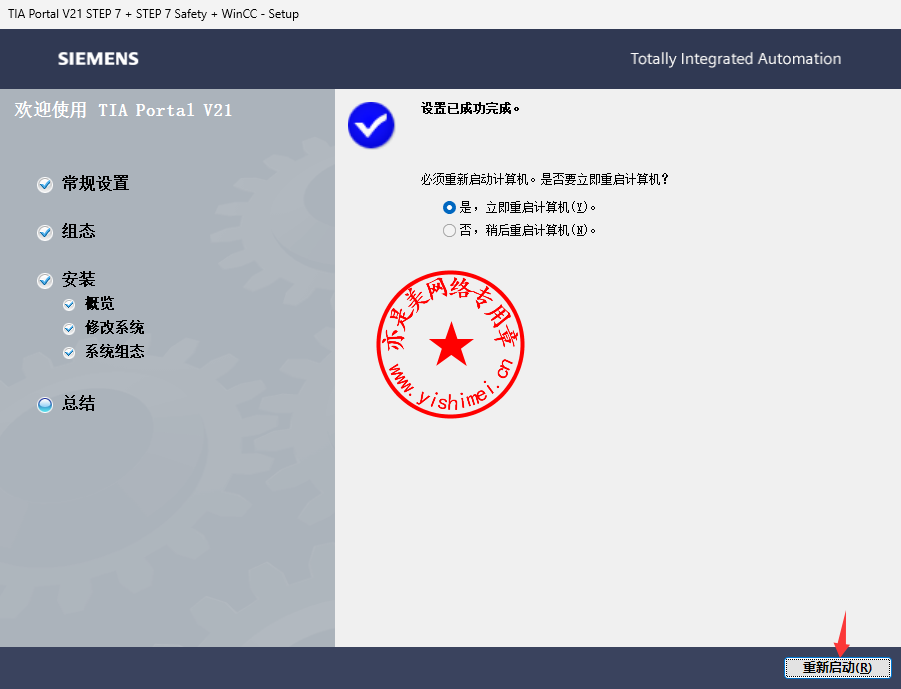 安装完毕,点击“重新启动”,暂不要运行软件,