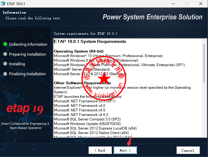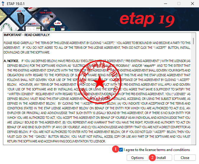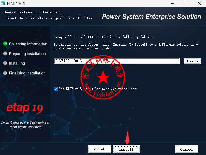下载<ETAP 19.0.1C+研习文件>压缩包,解压缩后进入ETAP1901文件夹,双击里面的ETAPINSTALLER文件开始安装,