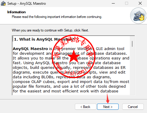 下载<AnySQL Maestro Professional 16.12.0.15+研习文件>压缩包,解压缩后双击里面的anysql_maestro_pro_setup.exe文件开始安装,