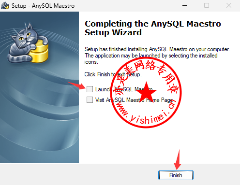 安装完成,去掉“Launch AnySQL Maestro”前面的勾,点击“Finish”,暂不要打开软件,