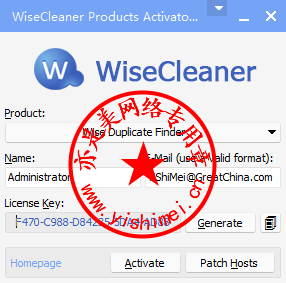 先选择产品:Wise Duplicate Finder,然后输入邮箱,接着点击“Activate”和“Patch Hosts”,