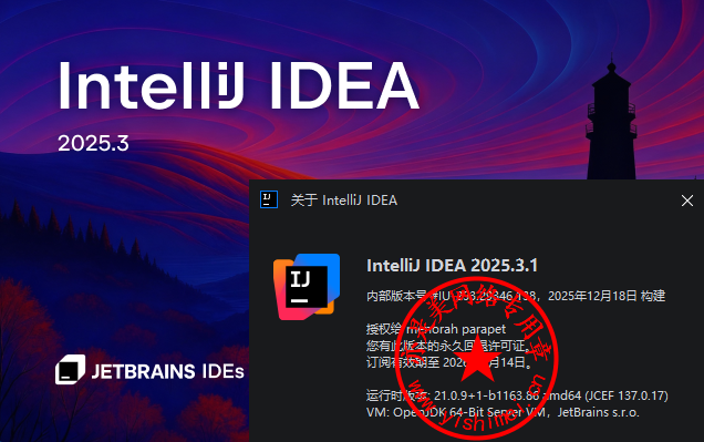 至此,Java集成开发环境 - JetBrains IntelliJ IDEA Ultimate 2025.3.1中文版 说明介绍完毕^_^
