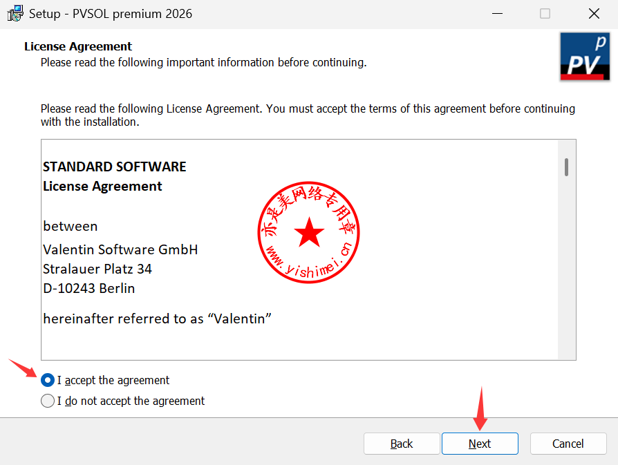 下载<PV*SOL premium 2026.1.32412+研习文件>压缩包,解压缩后,先进入Study文件夹,双击运行一下里面的blockhosts文件,然后双击PV-SOL.premium.2026.1.32412.Setup.exe文件开始安装,