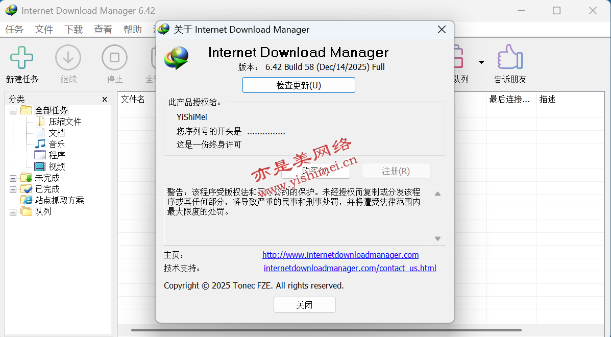 至此,功能强大的下载工具 - Internet Download Manager 6.42 Build 58中文版 说明介绍完毕^_^