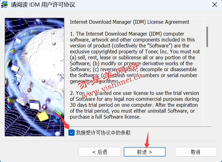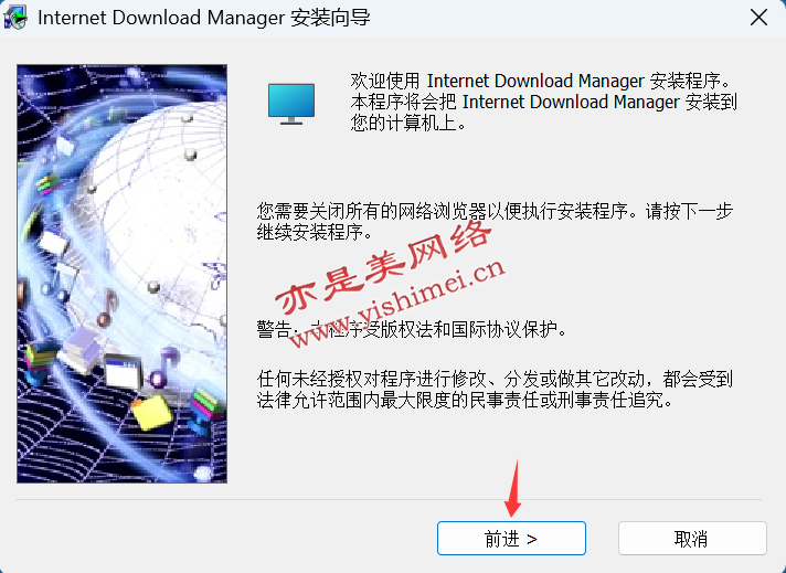 下载<Internet Download Manager 6.42 Build 58中文版+研习文件>压缩包,解压缩后双击里面的IDM.6.42.58Setup.exe文件开始安装,