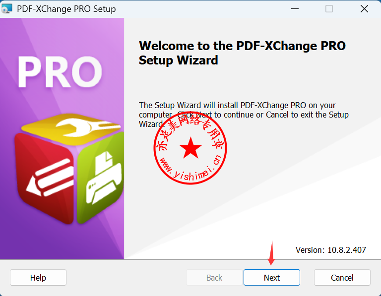 下载<PDF-XChange Pro 10.8.2.407中文版+研习文件>压缩包,解压缩后双击里面的ProV10.x64.msi开始安装,