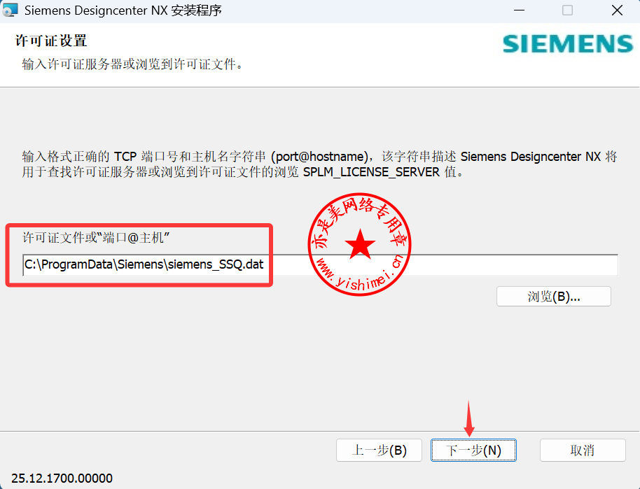 输入C:\ProgramData\Siemens\siemens_SSQ.dat,点击“下一步”,
