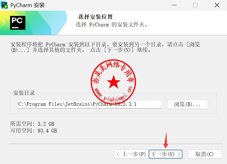 下载<Jetbrains Pycharm 2025.3.1中文版+研习文件>压缩包,解压缩后双击里面的idea-2025.3.exe开始安装,