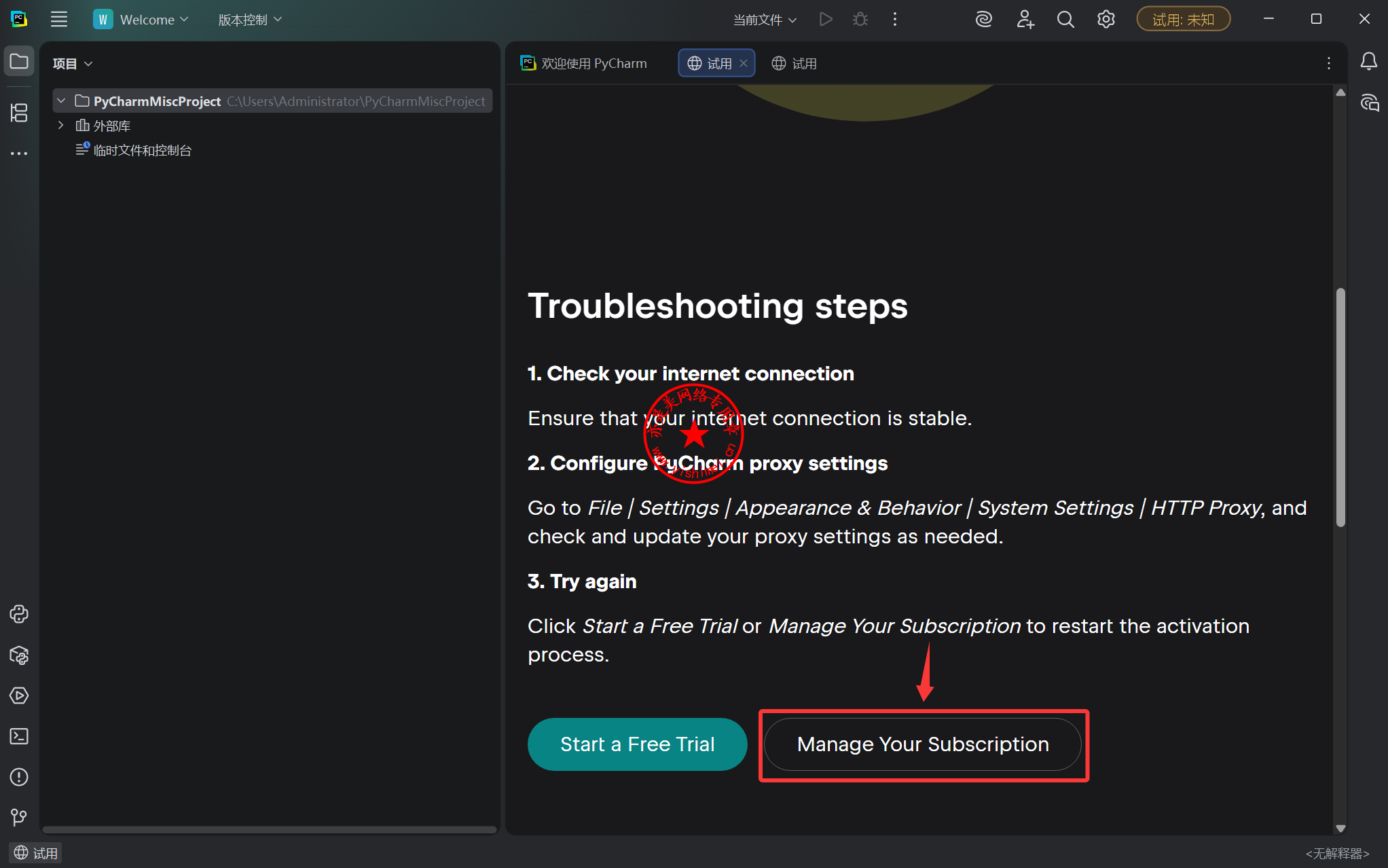 点击“Manage Your Subscription”,