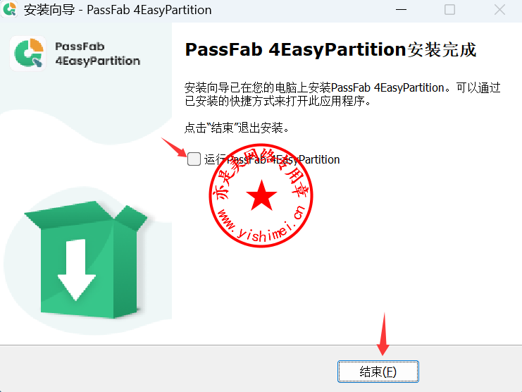 去掉“运行PassFab 4EasyPartition”前面的勾,点击“结束”,暂不要打开软件,
