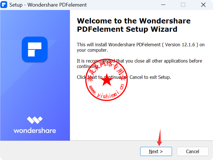 下载<Wondershare PDFelement Professional 12.1.7.3970 中文版+研习文件>压缩包,解压缩后双击里面的pdfelement-pro.exe开始安装,