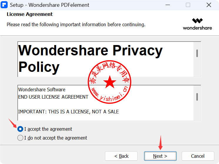 勾选“I accept...”,点击“Next”,