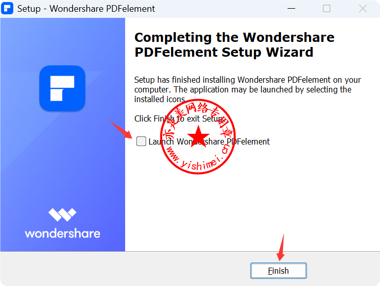 去掉“Launch Wondershare PDFelement”前面的勾,点击“Finish”,暂不要打开软件,
