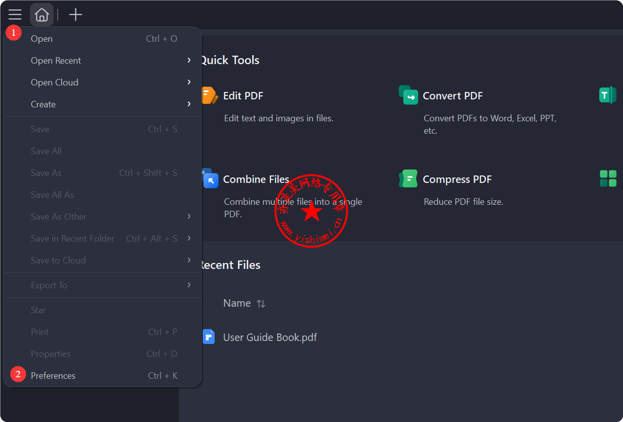 点击左上角菜单栏的“三”-“Preferences”,