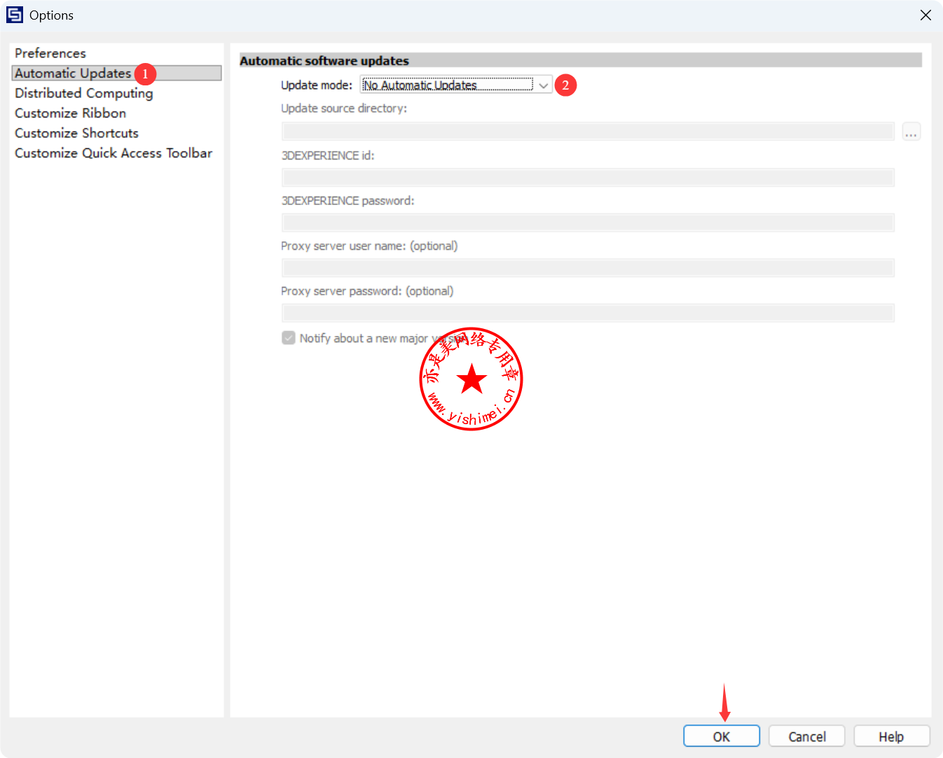 在左侧点击“Automatic Updates”,在右侧将“Update mode”改为“No Automatic Updates”,点击“OK”,