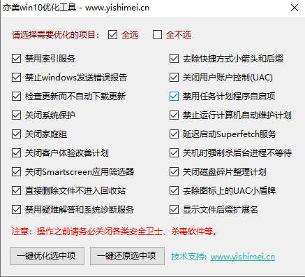 主要功能用于禁用一些不常用但又占用系统资源的项目,通过优化可以大幅提升系统运行效率,节省系统资源。